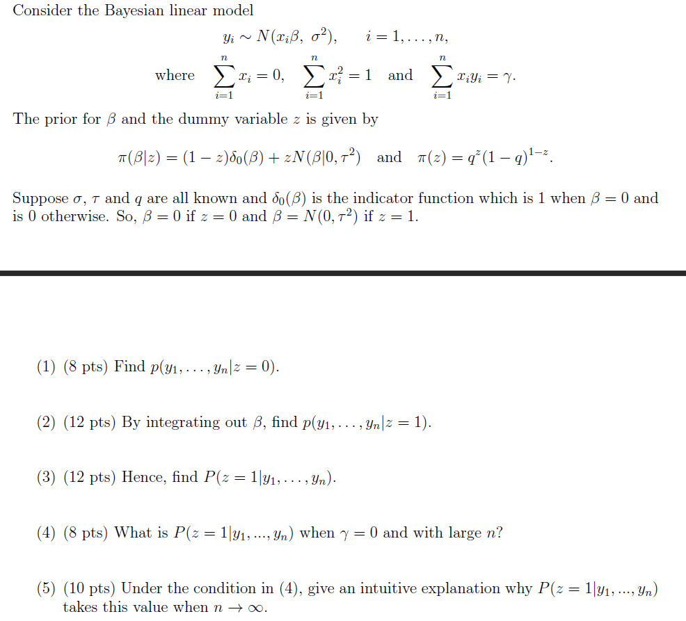 Solved Consider The Bayesian Linear Model Yi N X Ss O Chegg Com